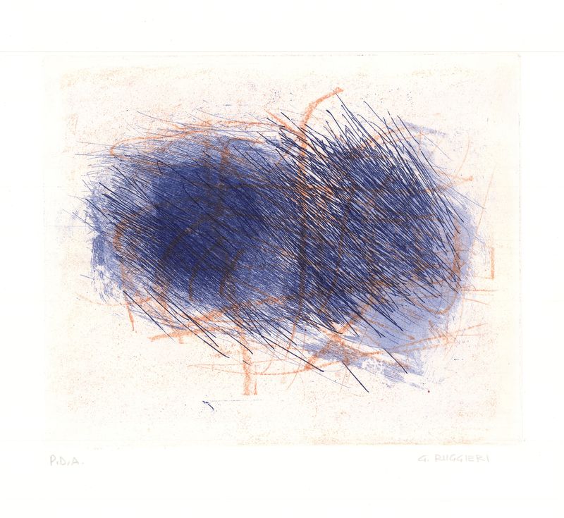 Note alla tecnica: Pluristampa di lastre inchiostrate in blu e arancione.