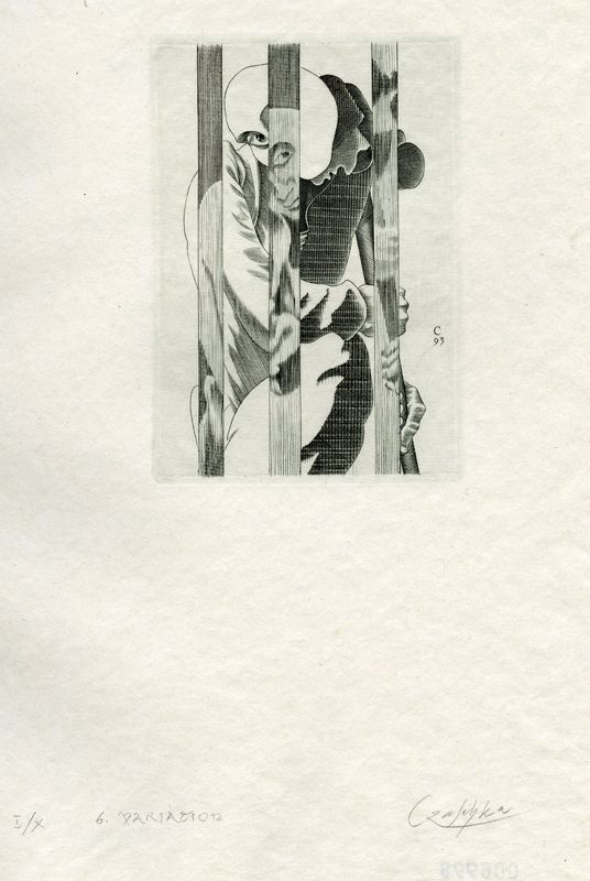 L'opera fa parte del libro d'artista: Josef Weinheber, "Variationen", Schlachtenhaus, Il bulino, 1993, composto da 10 incisioni. Nel Gabinetto delle Stampe di Bagnacavallo sono conservati un altro esemplare in foglio sciolto (inv. n. 9003) e la matrice dell'incisione (inv. Minc0233).