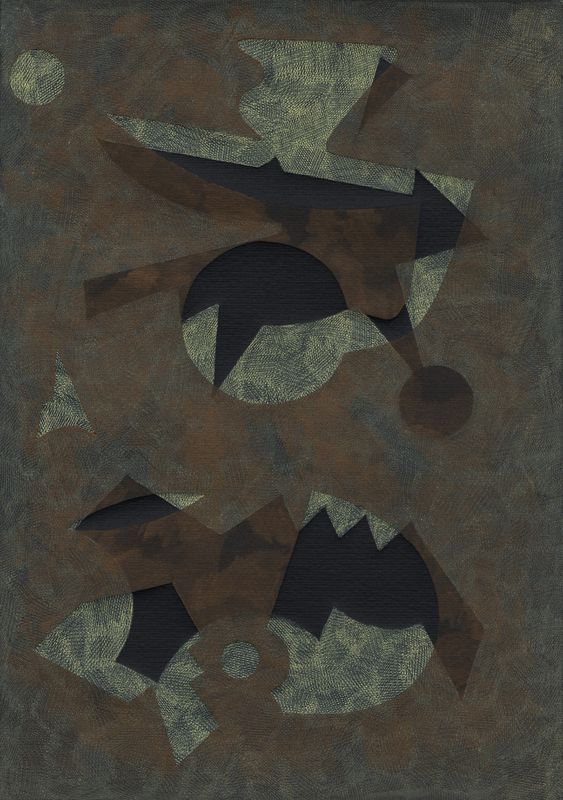 Note alla tecnica: Con interventi a rotella e perforazioni su lastra in PVC. Stampa a vari colori su cartoncino nero.