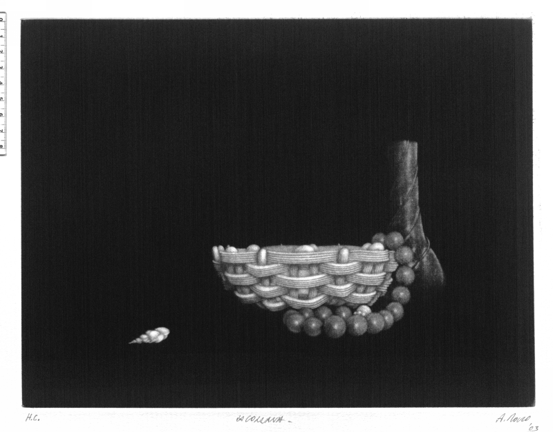 Esposta in mostra e pubblicata in catalogo alla II "Triennale internazionale d'Incisione Gianni Demo: premio Città di Chieri", imbiancheria del Vajro, Chieri (Ivrea), 2003.