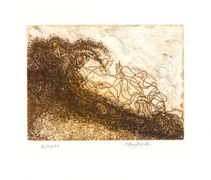 Note alla tecnica: Con interventi a morsura aperta. Monocromo ad inchiostro ambra.
