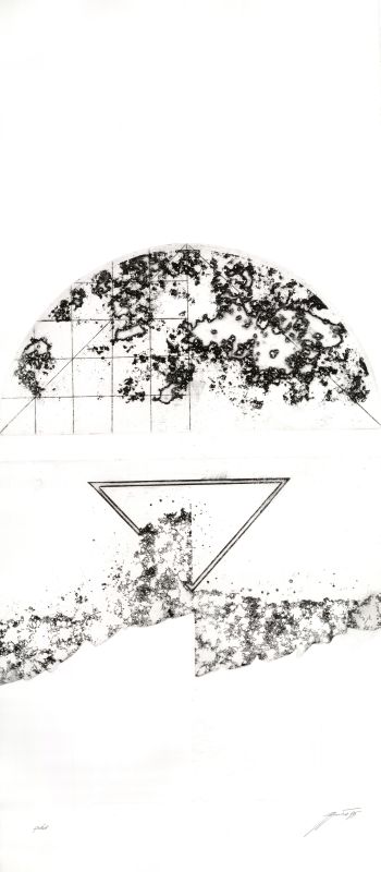 Note alla tecnica: Stampa su carta delle Cartiere Magnani Pescia 310 g/m2, realizzata con 2 lastre in zinco. Per la battuta a secco cartone trattato con vernice acrilica.